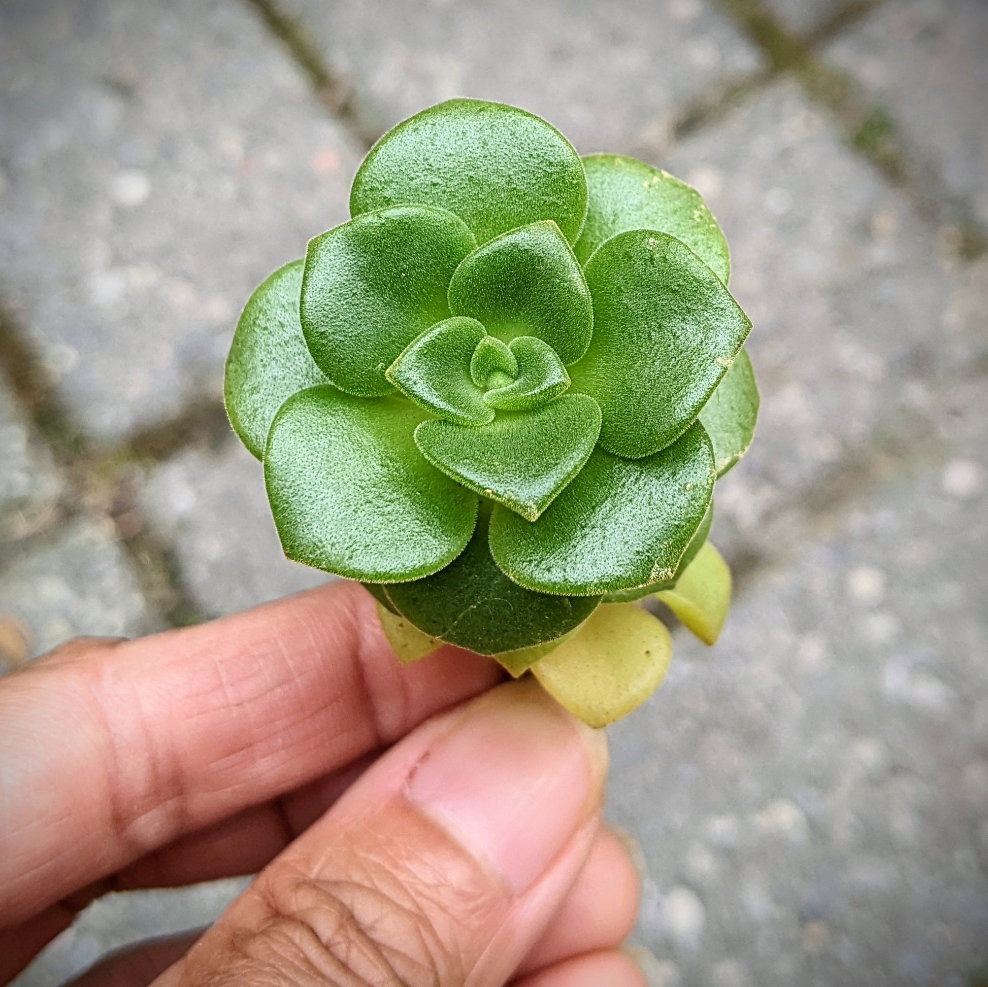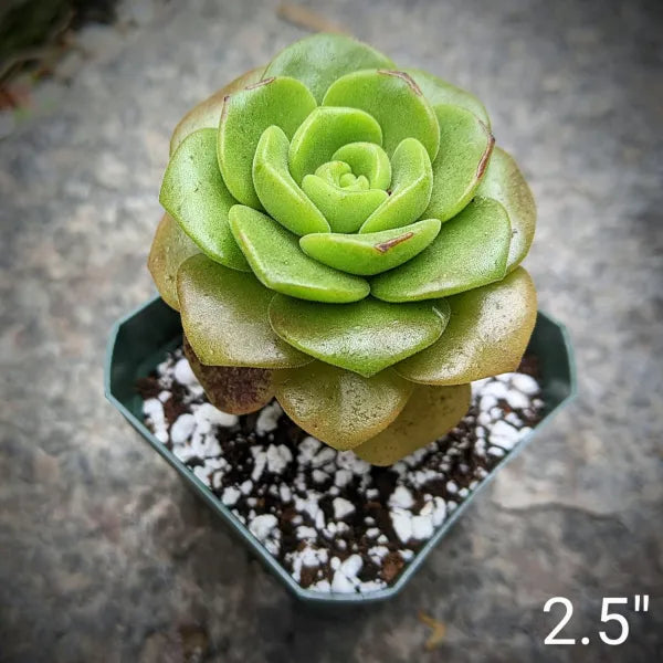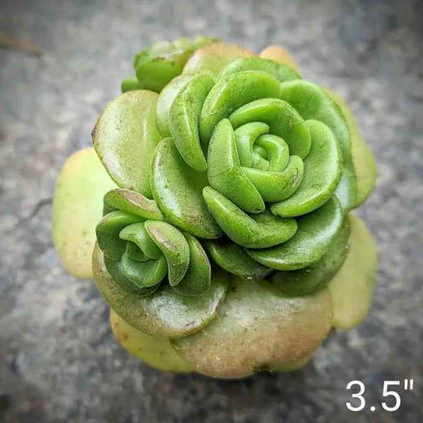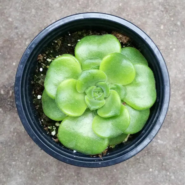 Aeonium 'Lily Pad' is a hybrid succulent with slightly sticky, thick leaves. It has rosettes that resemble lily pads, with leaves ranging in colour from vibrant green to a subtle pinkish hue when exposed to sunlight. This low-maintenance plant thrives in bright, indirect light and well-draining soil.