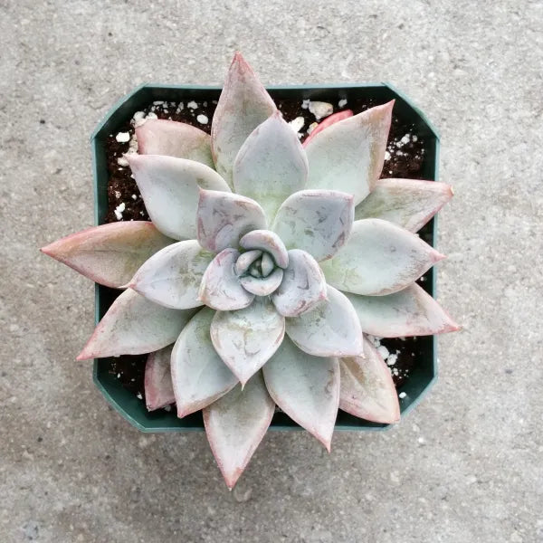 Echeveria Silver Queen is an attractive succulent known for its stunning rosettes of soft pastel pink leaves with a powdery coating. Reaching up to 7 inches in diameter, it makes a gorgeous addition to both indoor and outdoor gardens. This hybrid, believed to be a mix of Echeveria craigiana and an unknown species of Echeveria, features sharp, elegant leaves that create a unique and eye-catching display.