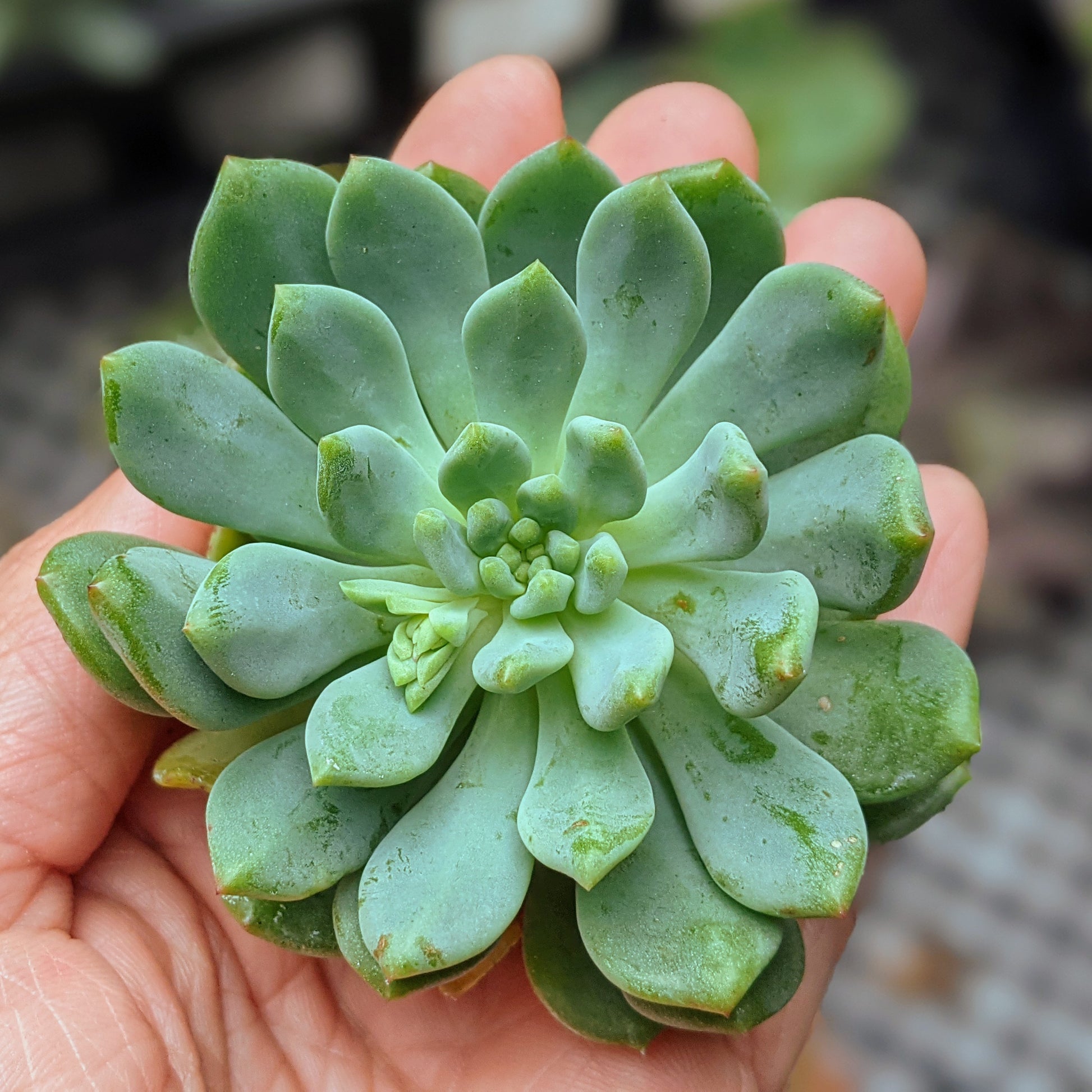 A compact, eye-catching succulent with powdery blue-green leaves that flush deep red at the tips when exposed to bright light or cooler temperatures. 'Blue Elf' forms neat rosettes and produces tall flower stalks with small, yellow star-shaped blooms in spring.