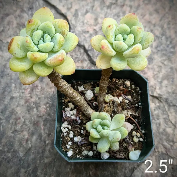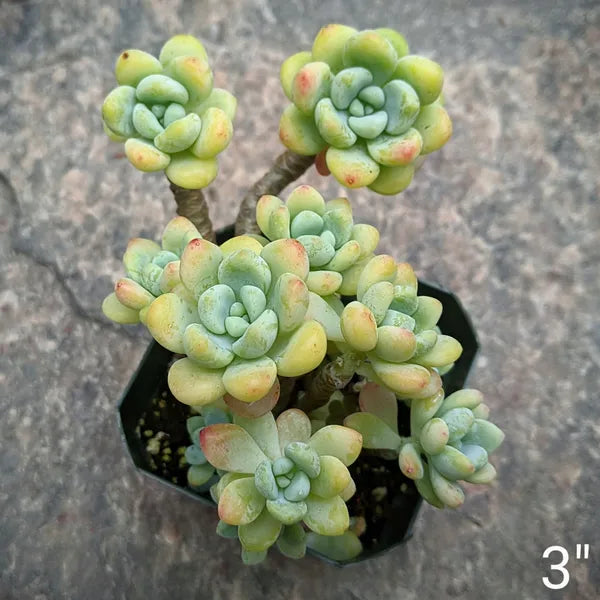 Sedum Clavatum is a charming perennial succulent known for its rosettes of thick, round, blue-green leaves that often blush pink at the tips under stress or bright sunlight. Native to Mexico, this plant grows in compact clusters and can produce small, white, star-shaped flowers in the spring. It works well as ground cover or in hanging baskets. Sedum Clavatum thrives in well-draining soil and requires minimal watering. It prefers full sun to partial shade.