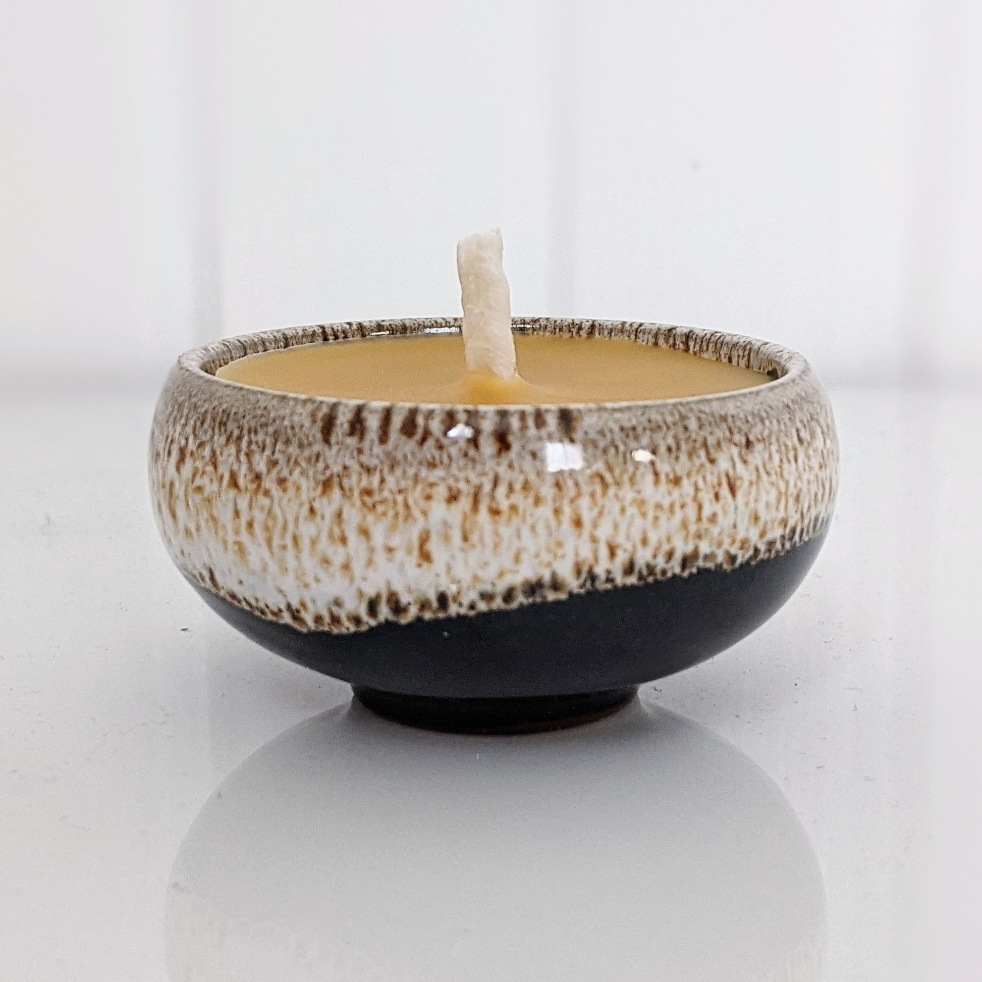 Hand-poured into reusable tealight cups measuring 2.25" W x 1.25" H, each candle holds approximately 1.3 oz of pure beeswax.