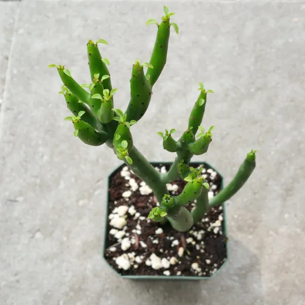Insert cutting into the soil (1" deep). When soil is dry, water the plant sparingly. Roots should form in the following two weeks. Plants should be in bright shade during the rooting period. To avoid leaves from getting burnt, acclimatize the plant to outdoors or full sun.