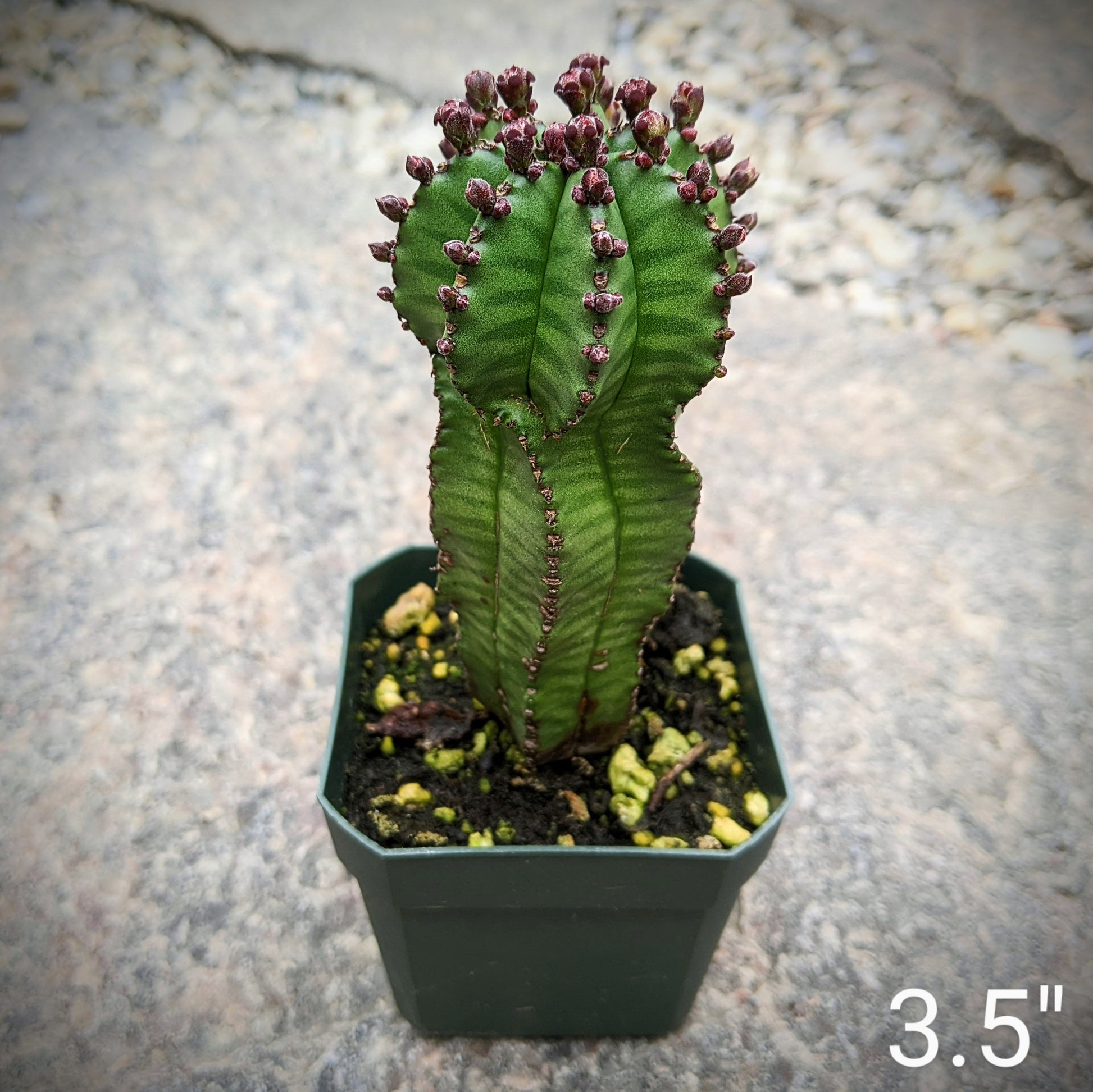 The Zipper Plant is a collector's dream with its perfectly ridged, geometric stems that spiral upward in symmetrical precision. This low-maintenance succulent boasts steel-blue stems with subtle purple hues when sun-stressed. Thriving on neglect, it's perfect for busy plant lovers. Prefers bright light and infrequent watering. Grows 6-12" tall. Note: Sap may irritate skin.