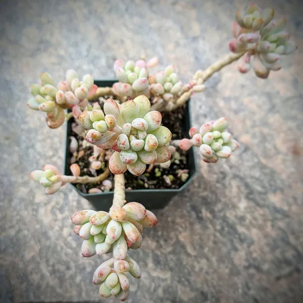 Easy to care for and quick to adapt, Graptopetalum microcalyx is perfect for beginners and collectors alike. Over time, it may produce star-shaped, pale yellow flowers that add delicate beauty to its striking form.