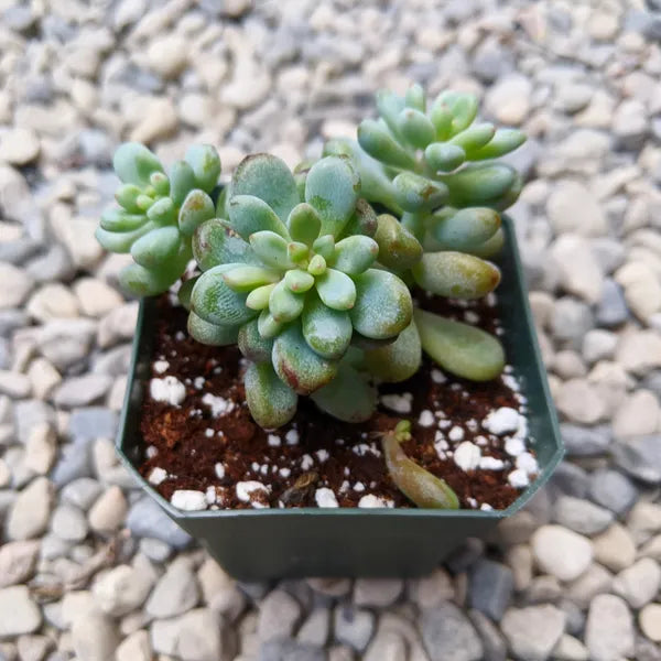 A charming, lesser-known succulent with tight rosettes of pointed, fleshy leaves that range from soft green to dusty lilac, often blushing pink under bright light or cool temperatures. This species stays compact and clusters over time, making it ideal for small containers, succulent arrangements, or windowsill gardens.