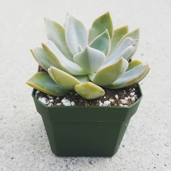 A beautiful hybrid with a soft, pastel palette, Graptoveria 'Douglas Huth' is a fast-growing succulent known for its wide, pointed leaves in shades of pink-lavender with silvery green undertones. With good sun exposure, the pink tones intensify, especially around the leaf edges.