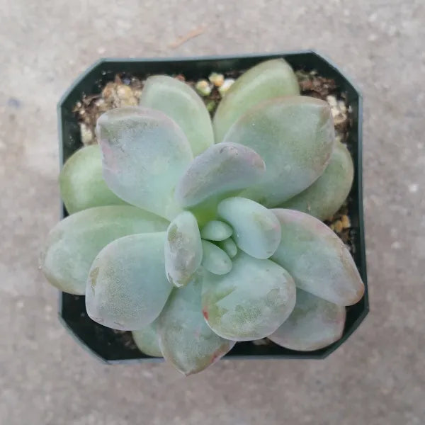 Graptoveria ‘Opalina’ is a charming succulent hybrid known for its rosettes of plump, opalescent blue-green leaves with pinkish tips. This low-maintenance plant thrives in well-draining soil and enjoys bright, indirect sunlight.