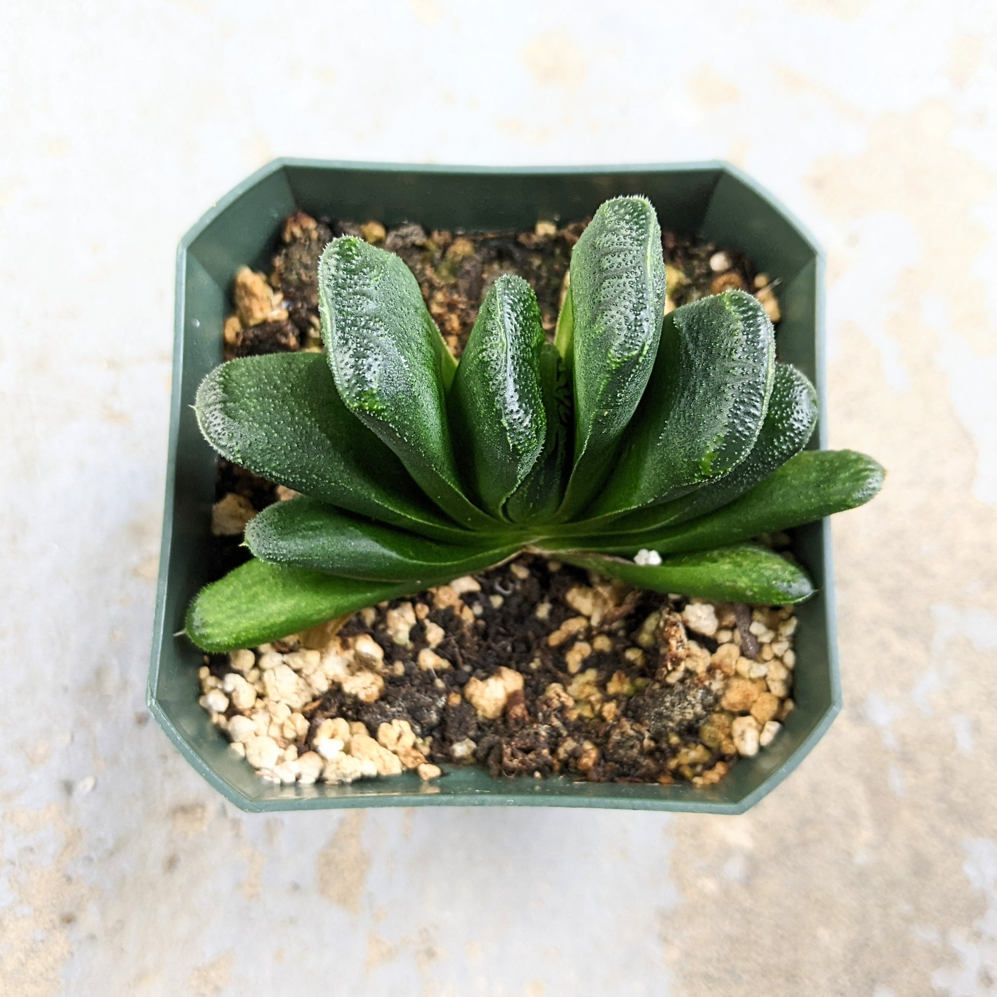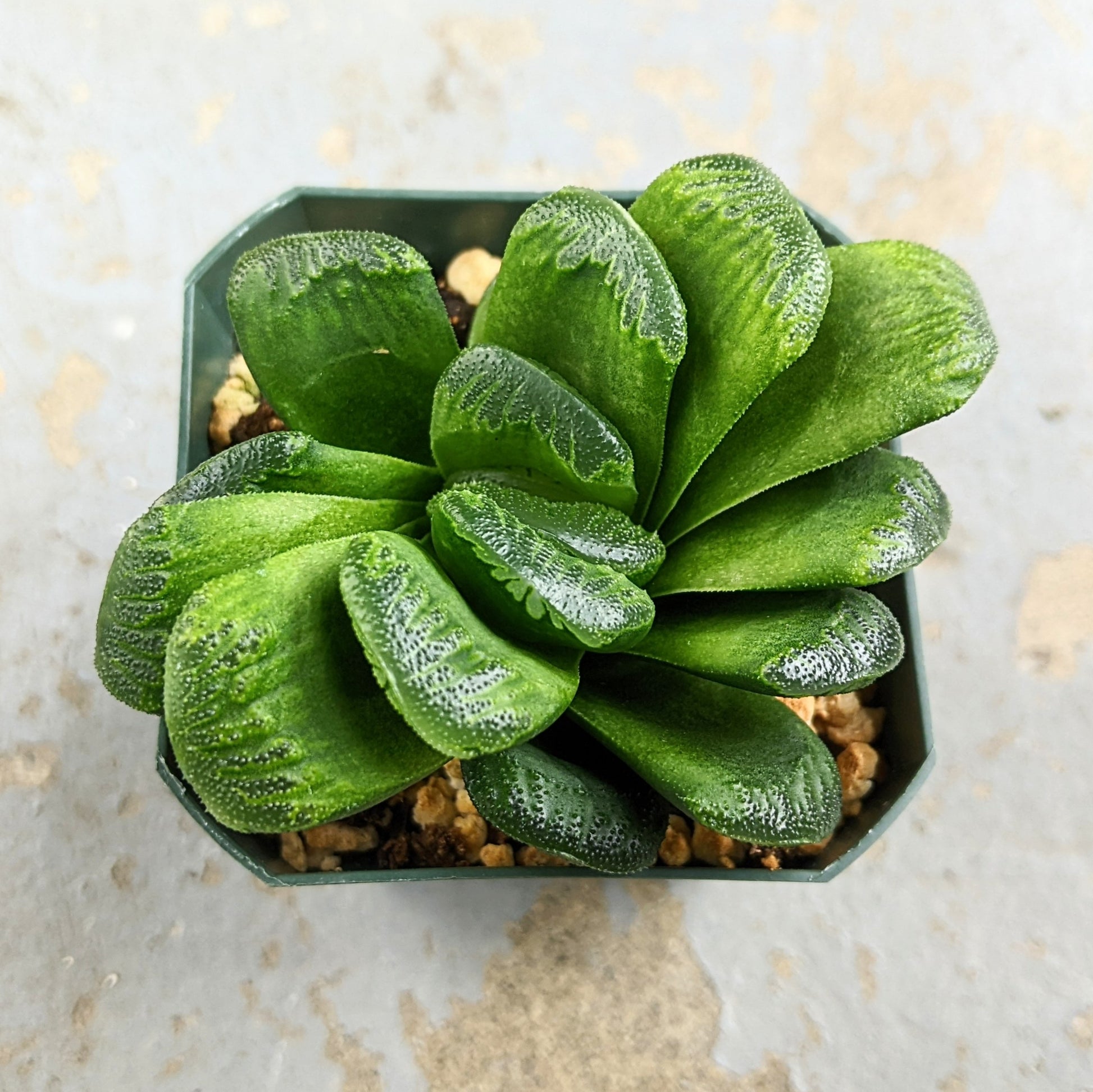 Haworthia truncata lime green is a very slow growing succulent plant that has a fan-like leaf with a semi transparent windows. This plant need a deep pot to accommodate the long, thick, contractile roots.