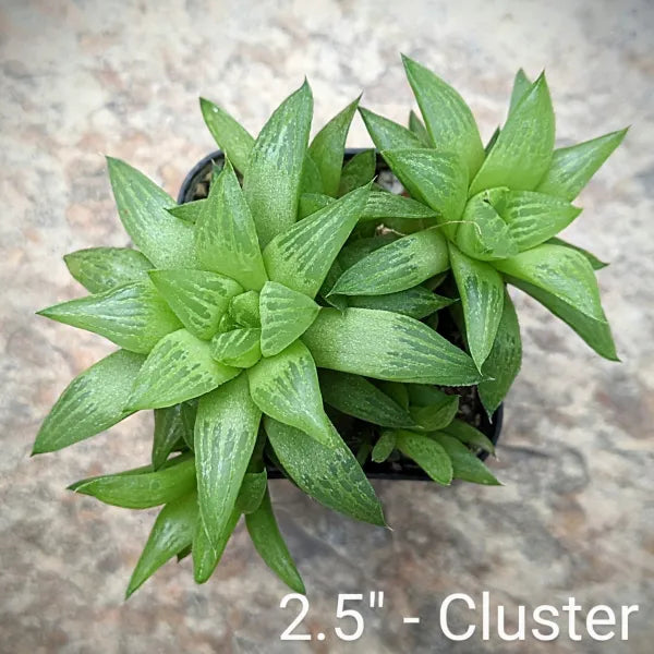 Haworthia Turgida is a small, clump-forming succulent native to South Africa. It is characterized by its densely packed, rosette-shaped clusters of fleshy, dark green leaves that often feature translucent tips. The leaves have raised, white tubercles on the undersides, giving them a textured appearance. This plant thrives in well-draining soil and prefers bright, indirect light. It requires minimal watering and is well-suited for indoor cultivation.