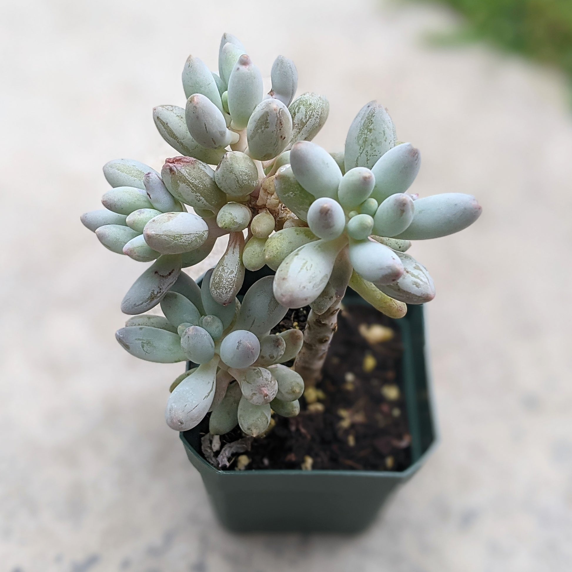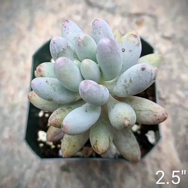 Pachyphytum Machucae is tolerant of both heat and sunlight, and its fleshy, finger-like leaves vary in colour from lavender to blue-grey to pink, depending on both temperature and sunlight. Offsets often appear at the base and, if lower leaves start to be pruned, it indicates a need for water.