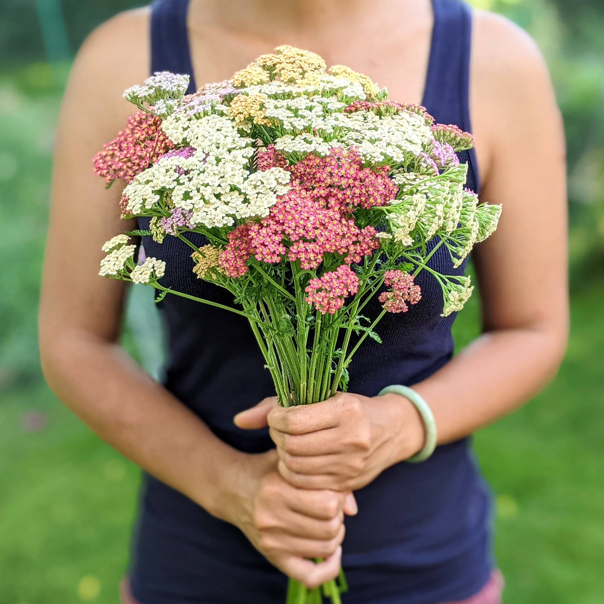 Grown with care in our garden, yarrow is a pollinator favourite and makes an excellent filler or focal flower in natural-style arrangements.